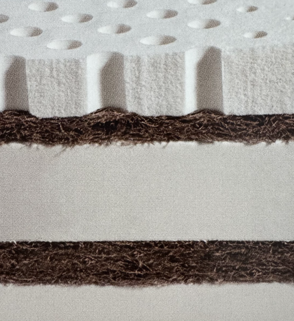 Οι ενισχύσεις από κοκοφοίνικα κατασκευάζονται από φυσικές ίνες που επικαλύπτονται με λάτεξ, προσφέροντας μεγαλύτερη ελαστικότητα και αντοχή. Η προσθήκη του κοκοφοίνικα εξασφαλίζει καλύτερο αερισμό και αποτελεσματικό έλεγχο της υγρασίας, δημιουργώντας μια φρέσκια και υγιεινή ατμόσφαιρα ύπνου.