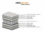 Στην καρδιά του στρώματος βρίσκονται ανεξάρτητα ελατήρια Pocket Springs ύψους 20 cm, διαμέτρου 18 cm, τα οποία λειτουργούν μεμονωμένα για κάθε σημείο του σώματος, προσφέροντας εξατομικευμένη υποστήριξη και μηδενική μεταφορά κίνησης. Αυτό το καθιστά ιδανικό για ζευγάρια και ανήσυχους ύπνους.