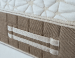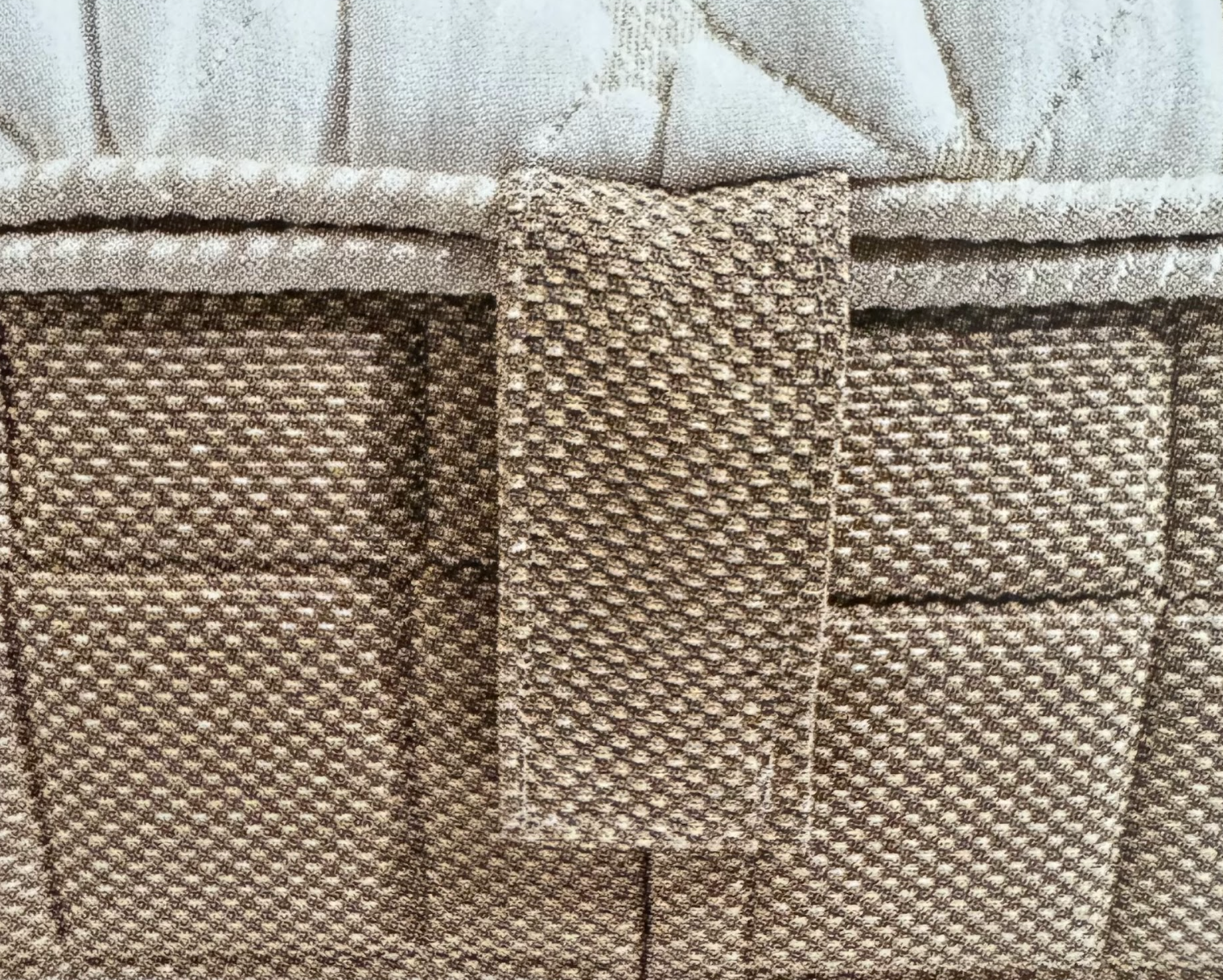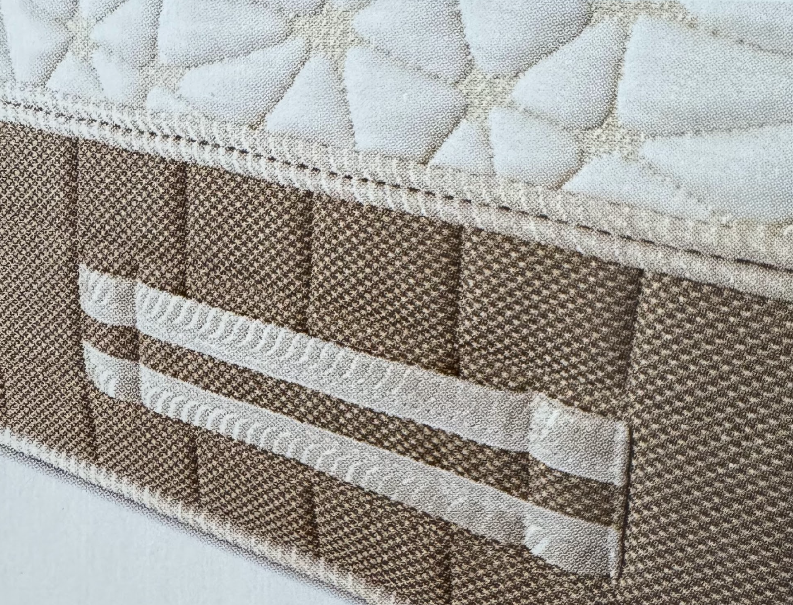 Η κάτω πλευρά περιλαμβάνει ένα λεπτό στρώμα ίνες καρύδας (1 εκ.), που ενισχύει τη σταθερότητα και τον φυσικό εξαερισμό του στρώματος. Το κάλυμμα είναι πολυτελές, αποσπώμενο με φερμουάρ και ενσωματωμένες χειρολαβές για ευκολία στη χρήση και στο καθάρισμα.