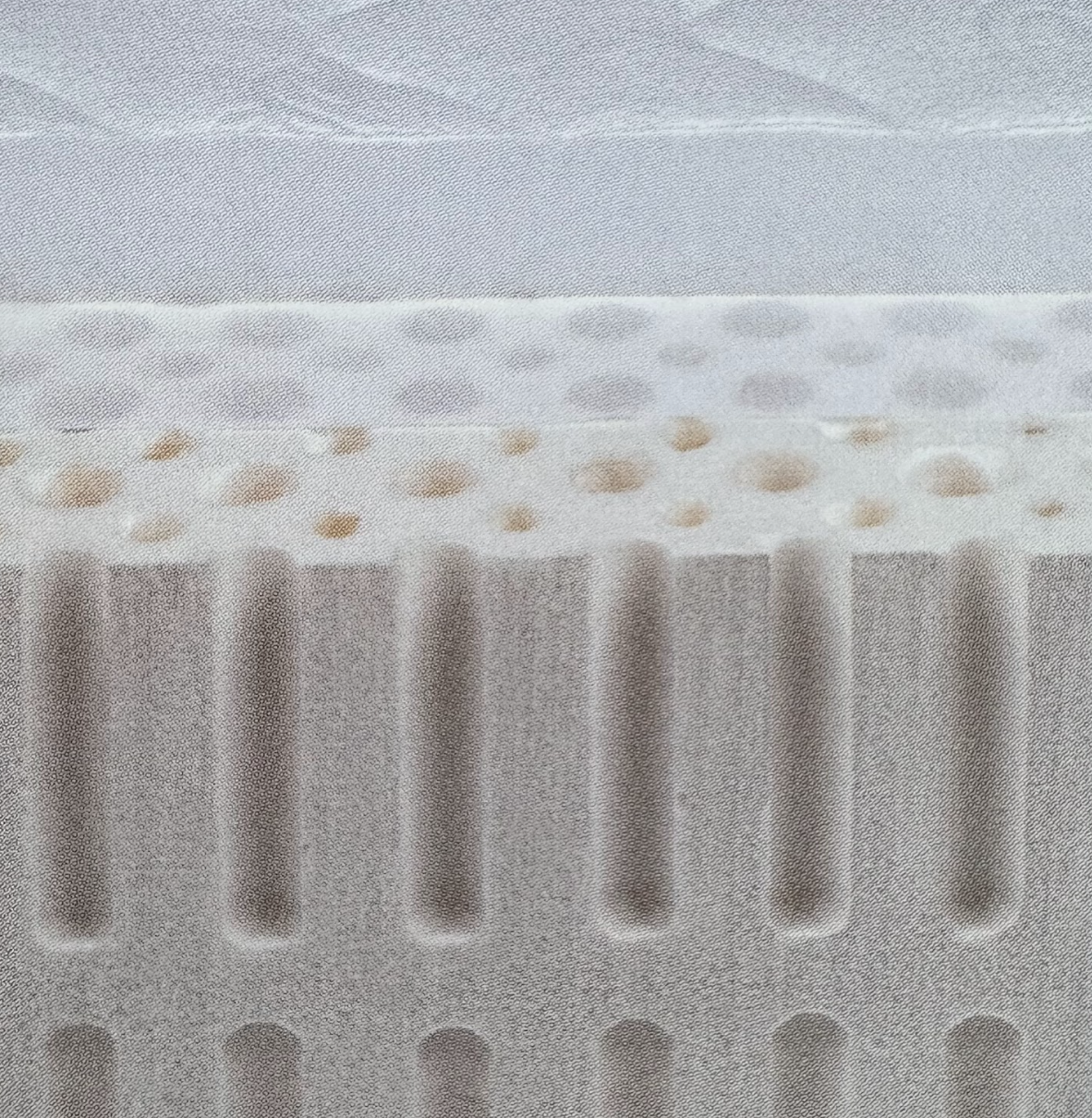 Το στρώμα ντύνεται με υψηλής ποιότητας βέλγικο ύφασμα με φερμουάρ, με αντιακαρική επεξεργασία και αφαιρούμενο κάλυμμα για εύκολο καθαρισμό. Διατίθεται σε τρεις διαφορετικές σκληρότητες – M (μέτριο) για άτομα έως 90 κιλά, F (σκληρό) για 90–130 κιλά και SF (πολύ σκληρό) για άτομα άνω των 130 κιλών – ώστε να επιλέξετε αυτό που ταιριάζει στις ανάγκες σας.
