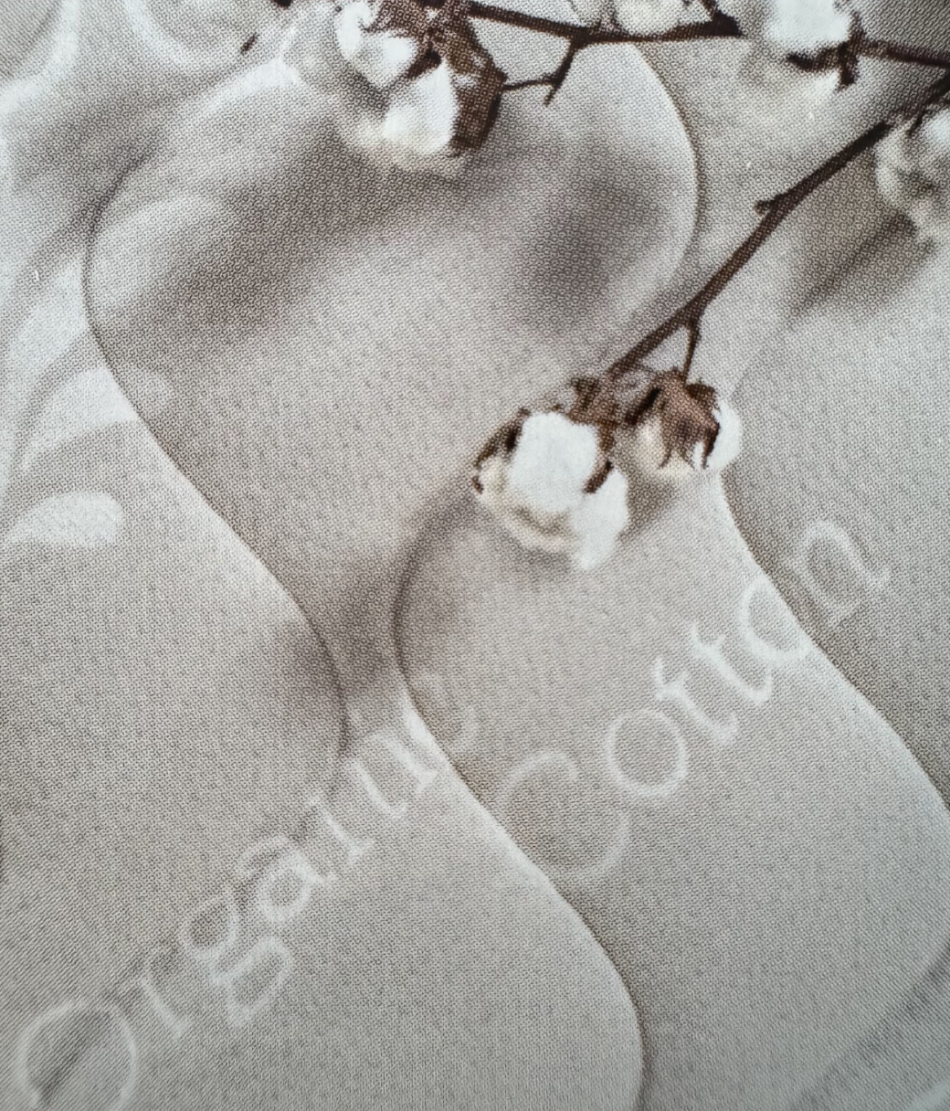 Το εξωτερικό κάλυμμα είναι κατασκευασμένο από 100% οργανικό βαμβάκι (Organic Cotton), αφαιρούμενο με φερμουάρ από όλες τις πλευρές και πρακτικές χειρολαβές για εύκολη μετακίνηση και συντήρηση. Εσωτερικά, το στρώμα προστατεύεται από υφασμάτινο κάλυμμα τύπου ζέρσεϊ (τρικό).