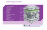 Στον κύριο πυρήνα του στρώματος, ο συνδυασμός Eco Latex, Memo Foam και Soft Foam λειτουργεί συνεργατικά για να προσφέρει ανατομική προσαρμογή, ελαστικότητα και μείωση πίεσης στα σημεία. Το Eco Latex, φιλικό προς το περιβάλλον, ενισχύει την ελαστικότητα και τη διαπνοή, ενώ το Memo Foam προσαρμόζεται άμεσα στις καμπύλες του σώματος, εξασφαλίζοντας έναν πραγματικά «προσωπικό» ύπνο.